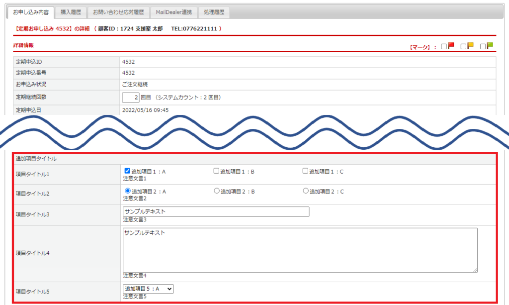 2回目以降の受注データ作成時に、定期の追加項目の設定内容が引き継がれます。