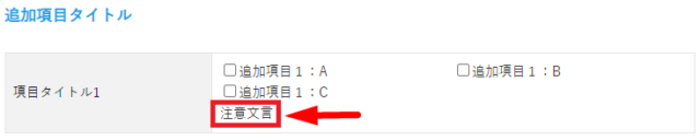 | 注意文言 | 追加項目下部に表示する文言を設定します。 (設定例)