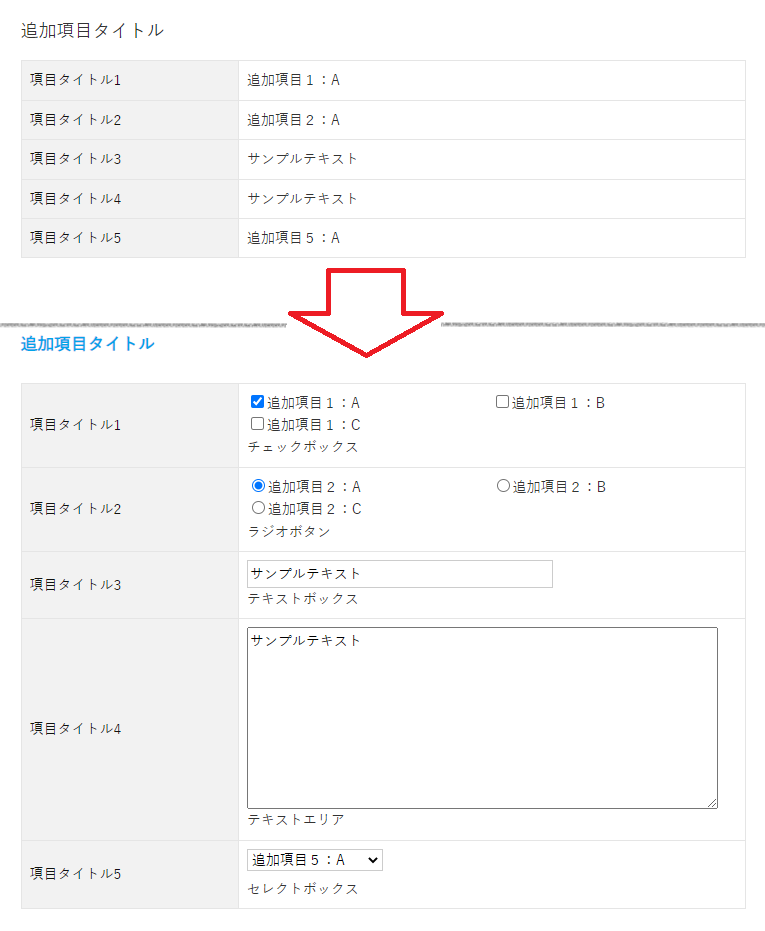 | テキストエリア | 項目タイトル: 入力内容… |