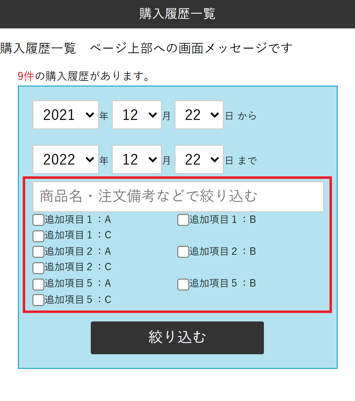 購入履歴一覧の絞り込み