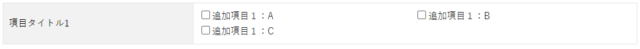 | チェックボックス | 項目タイトル:選択要素1,選択要素2… |