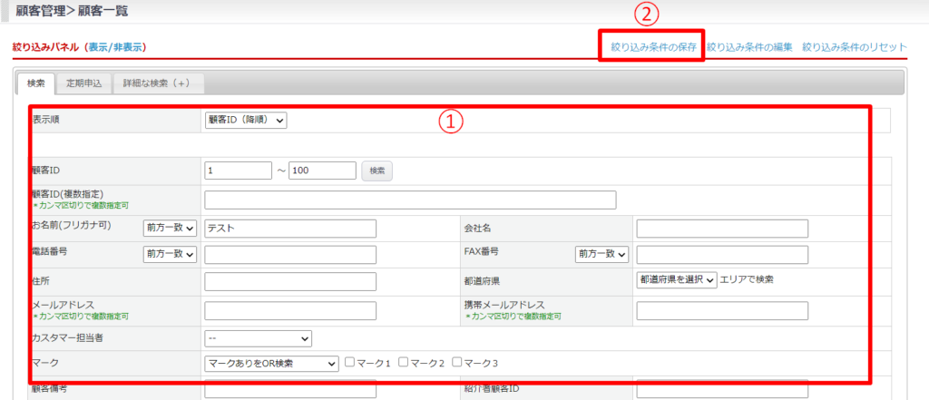 2.「絞り込み条件の保存」をクリックし、条件名を設定し保存します。