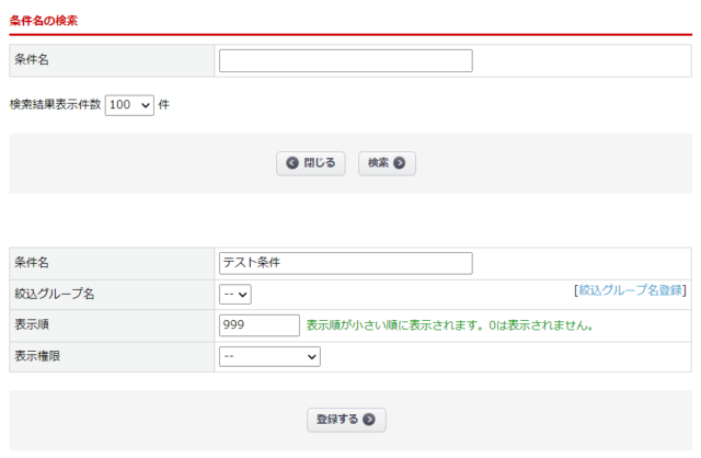 「編集」では、条件名の変更や表示権限の設定が可能です。