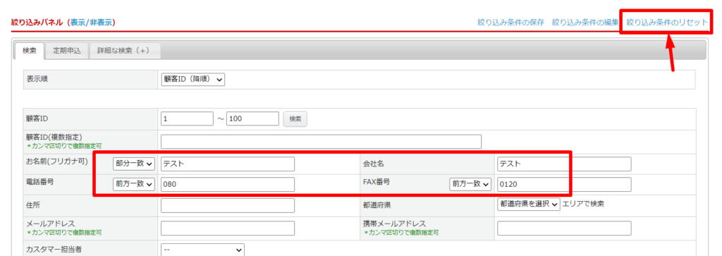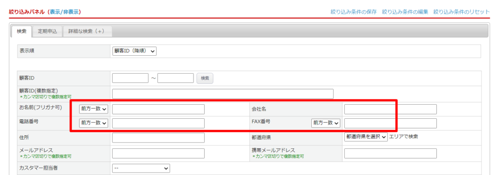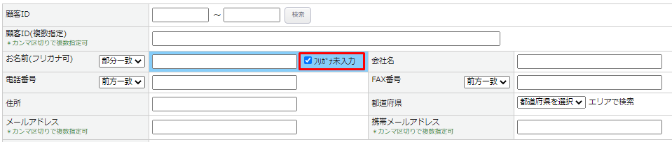 お名前(フリガナ)が未入力の顧客を検索対象とします。