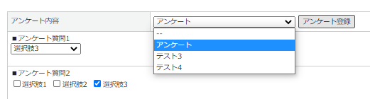 「アンケート内容」をプルダウンより選択し【アンケート登録】ボタンをクリックすると、