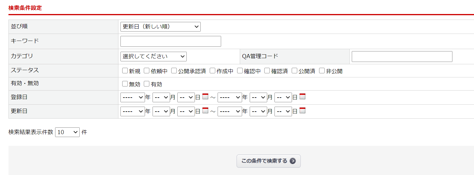 | ステータス | QA情報のステータスを条件に検索します。 |