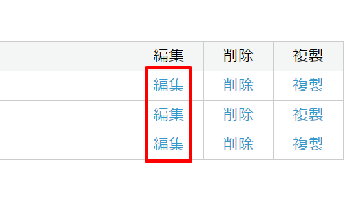 検索結果一覧の「編集」をクリックしてください。
