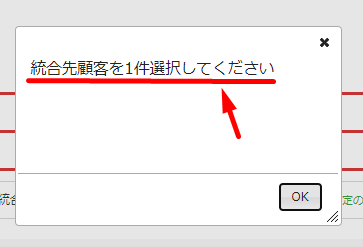 しかし、統合先については1件のみの選択にしてください。