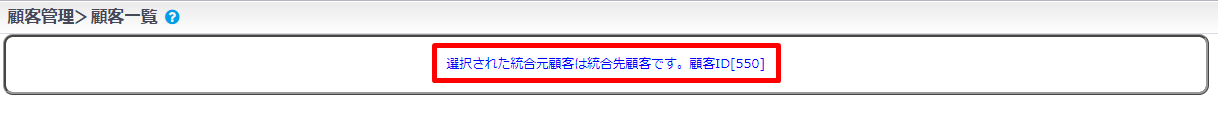 顧客統合時、顧客一覧画面上部に注意文が表示されます。