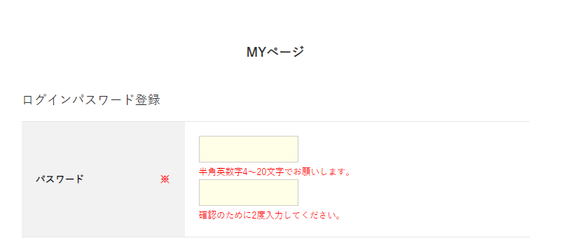 パスワードを登録すると、パスワード登録済の会員に更新されます。