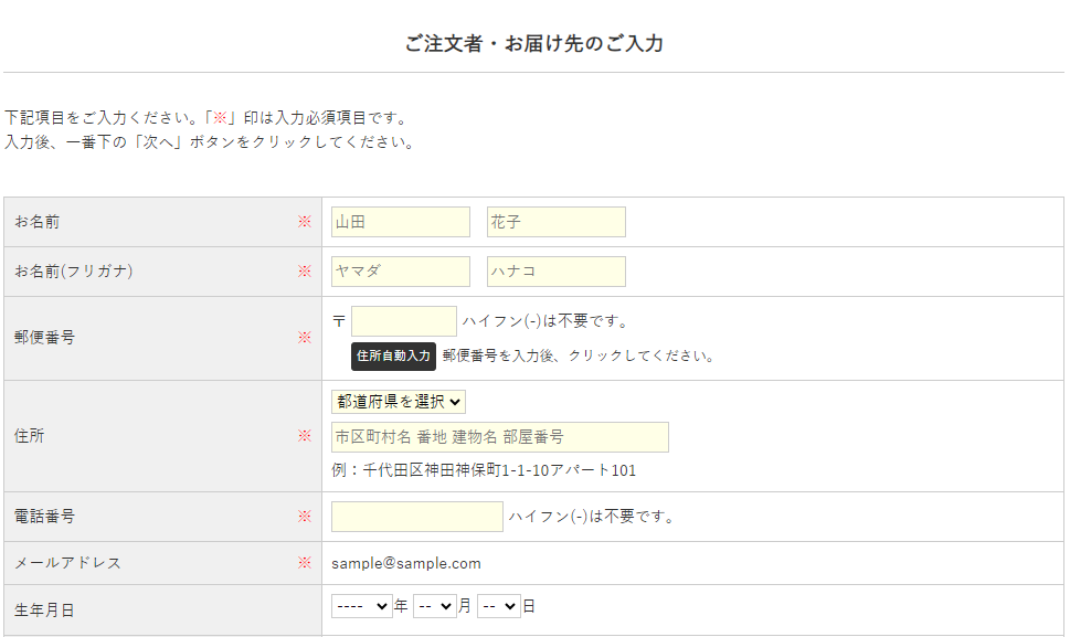 簡易会員登録済みの顧客が購入手続きを進めると、購入の際に入力したお届け先等の情報をもとに顧客情報が更新されます。