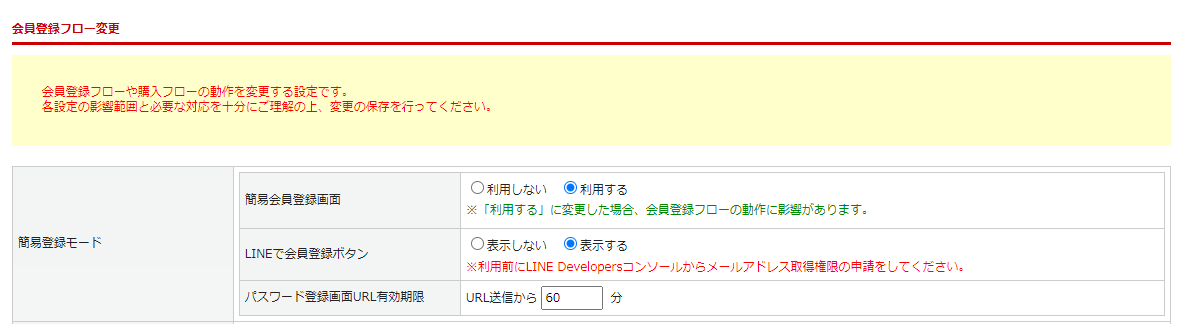 ※LINE連携機能はオプション機能(有償)です。ご利用をご希望の場合にはサポートまでお問合せください※簡易会員登録を利用するためには、以下の項目の設定が必要です。