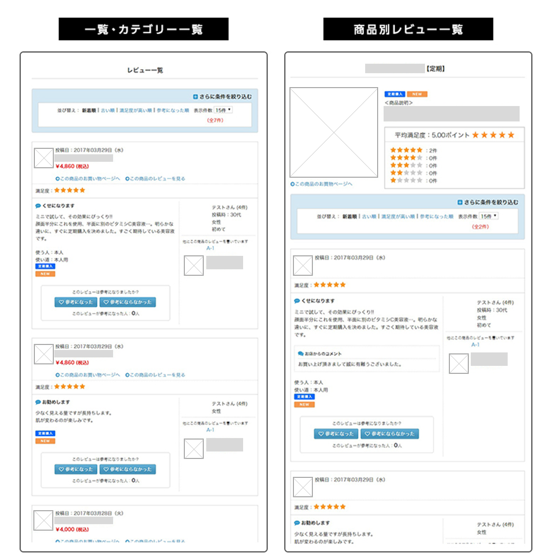 • カテゴリ別レビュー一覧ページ:カテゴリに属する商品のレビューが一覧で表示されます。