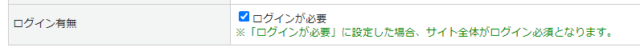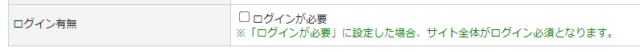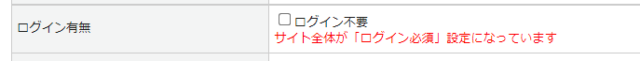 | ログイン有無 | デザイン(PC/スマートフォン)>ページ設定 の「TOPページ」編集画面の「ログイン有無」の設定により、 表示されるチェックボックスが切り替わります。 ※TOPページの設定と異なる場合にチェックをつける必要があります。