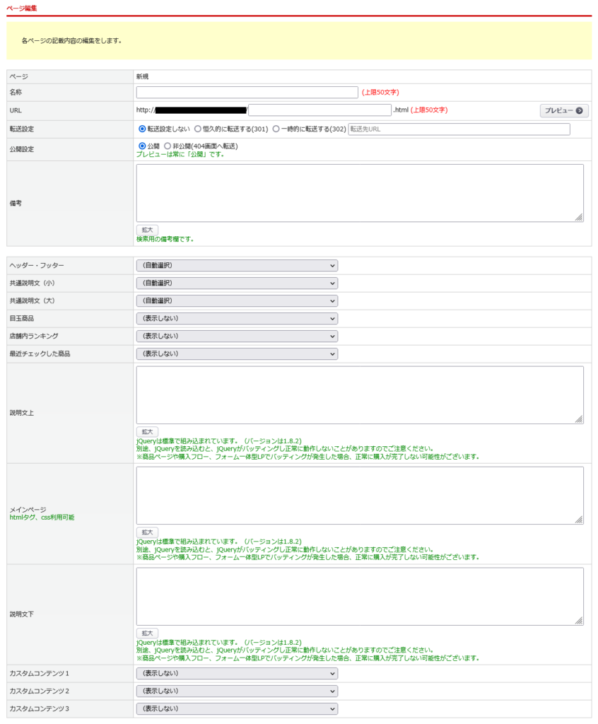 公開設定 当該ページを[公開]するか[非公開]にするか選択します。