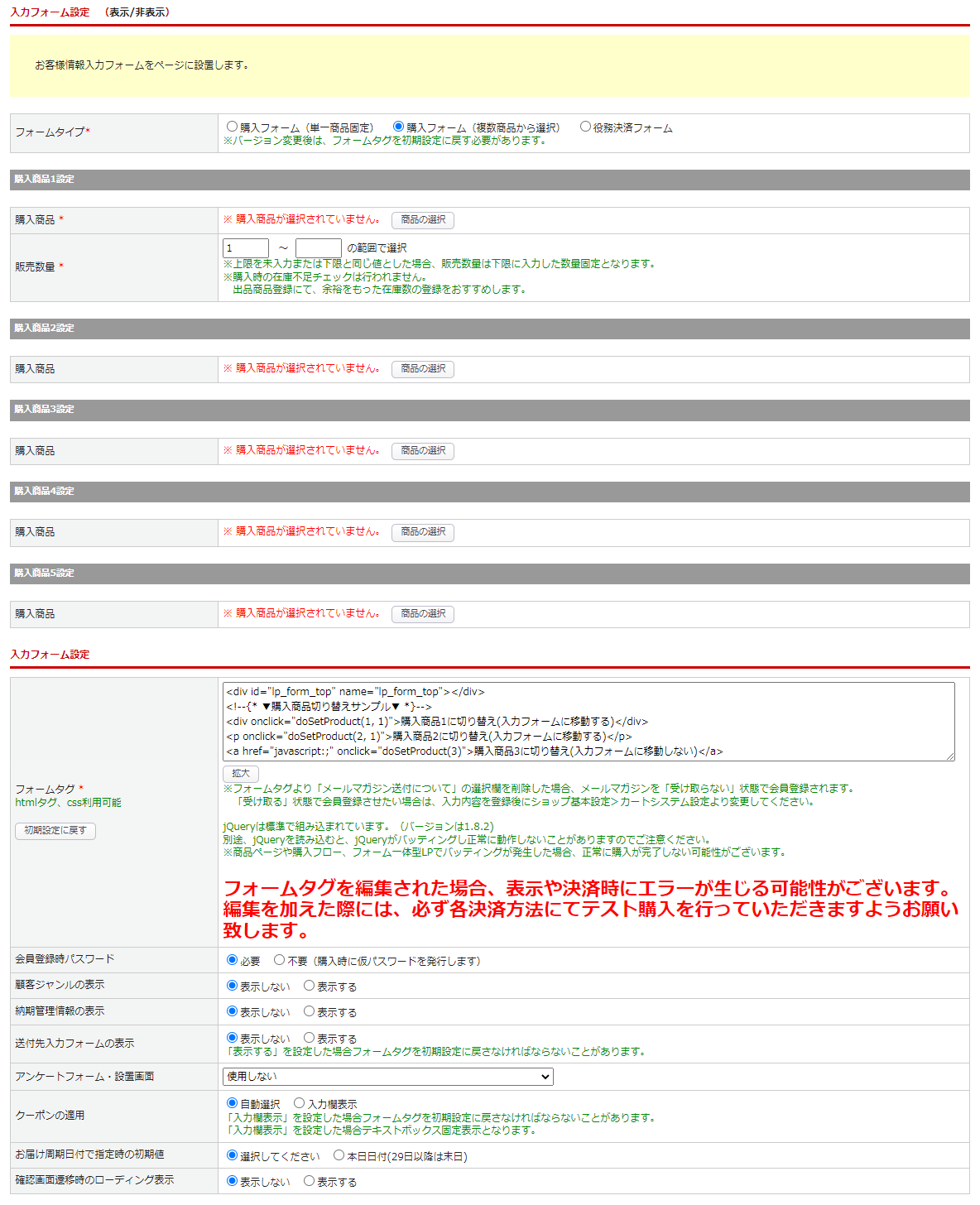 ※[入力欄表示]を設定した場合フォームタグを初期設定に戻さなければならないことがあります。