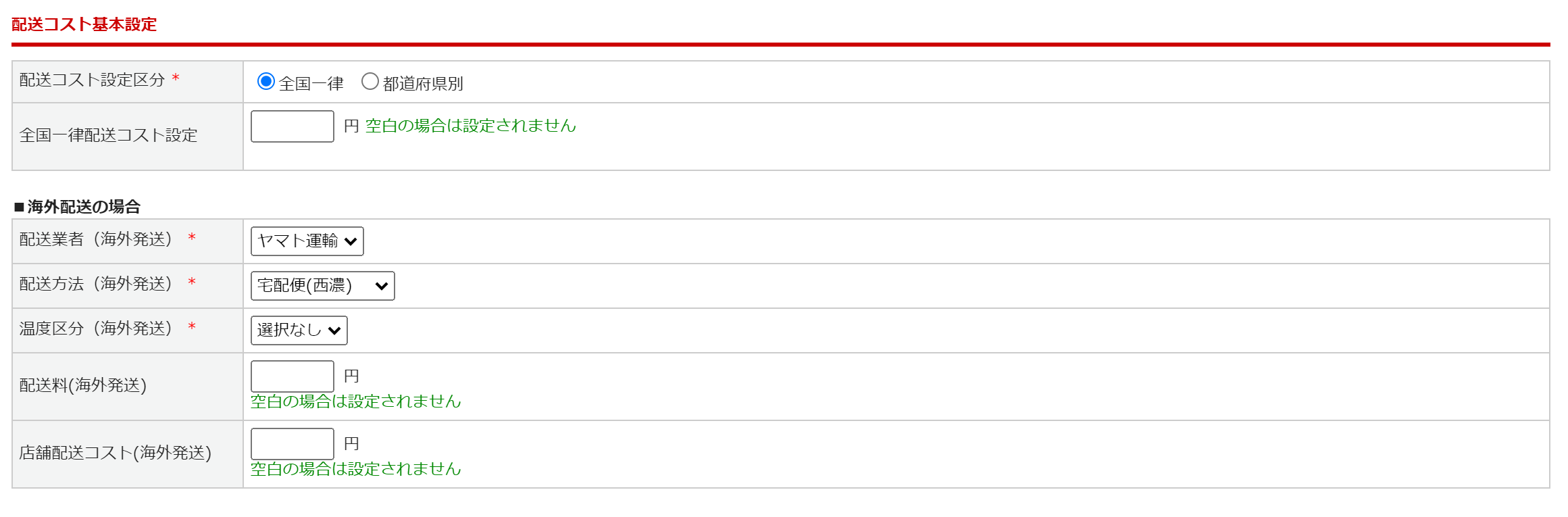 注文者と送付先が同じ場合、同画面下部の配送業者別設定に設定した内容が反映されます。