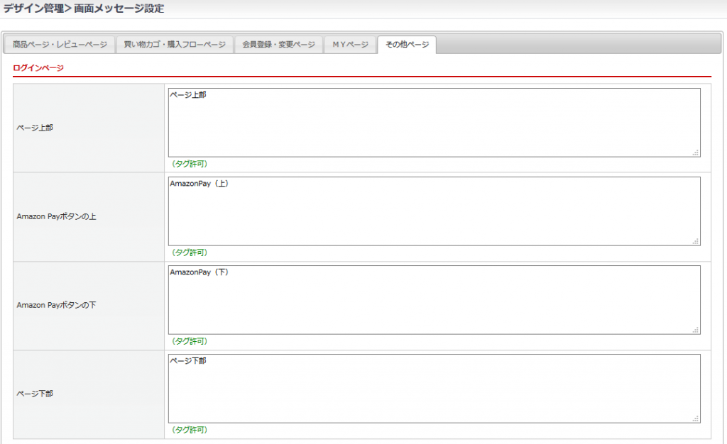 デザイン管理(PC/スマートフォン)>画面メッセージ設定>その他ページタブ>ログインページ