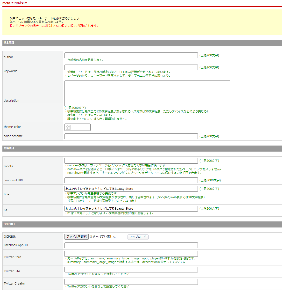 | OGP画像 | シェアされた際に表示する画像を指定 |