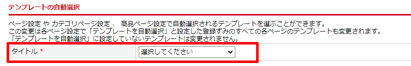 設定画面のテンプレートの自動選択にて、プルダウンから「選択してください」を選択してください。