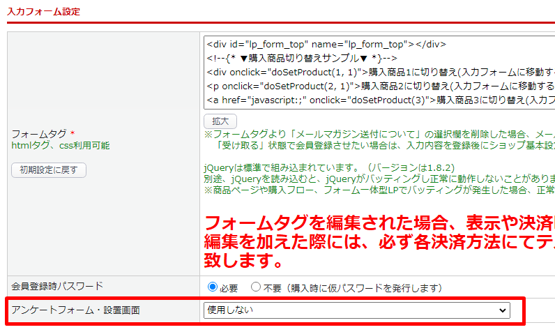 ※アンケートフォームは、フォーム一体型LPのみに対応しています。
