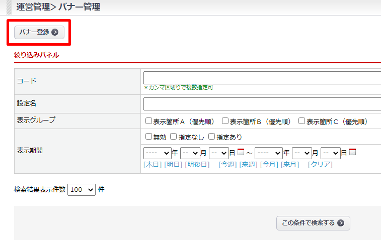運営>バナー管理 の詳細についてはこちらをご参照ください。