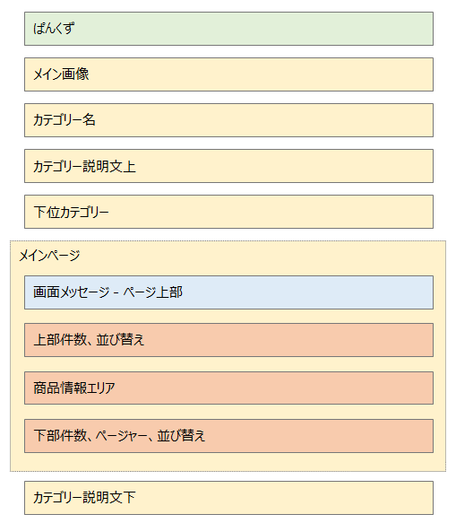 | カテゴリー名 | カテゴリー名が表示されます。 カテゴリー名は、出品>カテゴリー登録の「カテゴリー情報」の項目「カテゴリー名」で設定できます。 カテゴリー名はメイン画像の下部に表示されます。 |