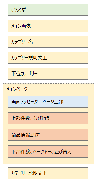 | カテゴリー説明文上 | カテゴリー説明文上が表示されます。 出品>カテゴリー登録の「表示内容設定」の項目「カテゴリ説明文上」で設定できます。 |
