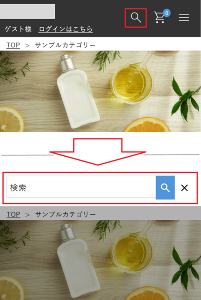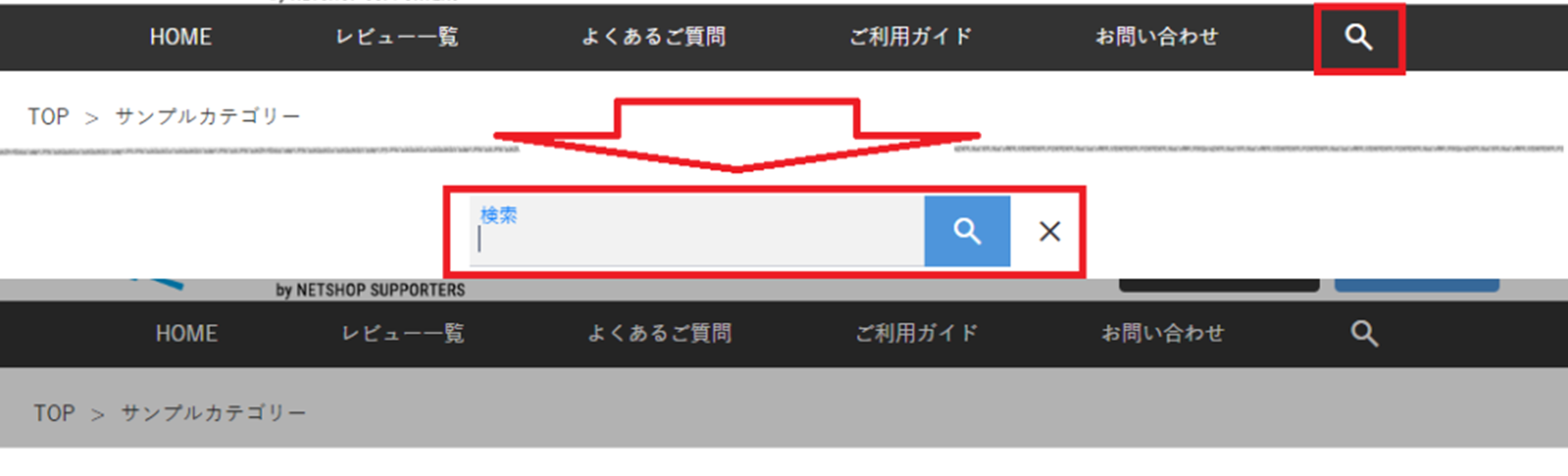 「ヘッダー検索」を設置すると、虫眼鏡ボタンが表示されます。