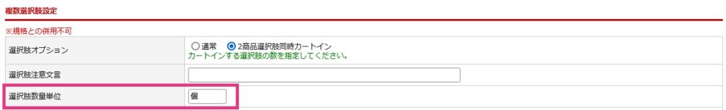 複数選択肢オプション利用時の表示について(複数選択肢オプション利用時)