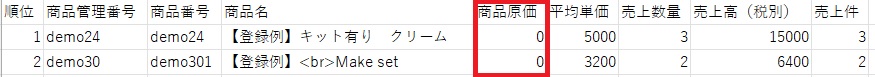 商品別分析CSVについて