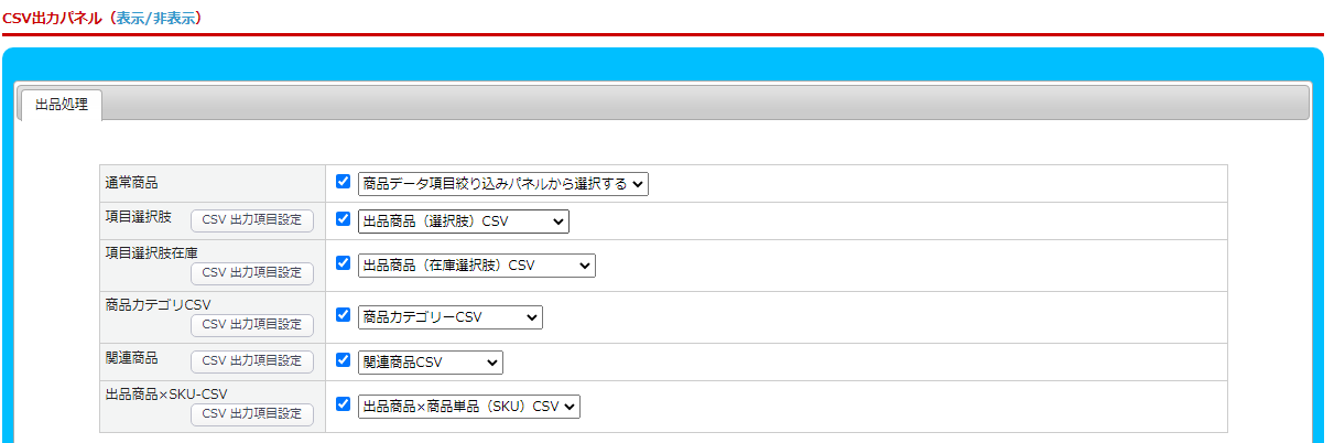 ・出品商品×SKU-CSV:在庫設定・商品SKU設定