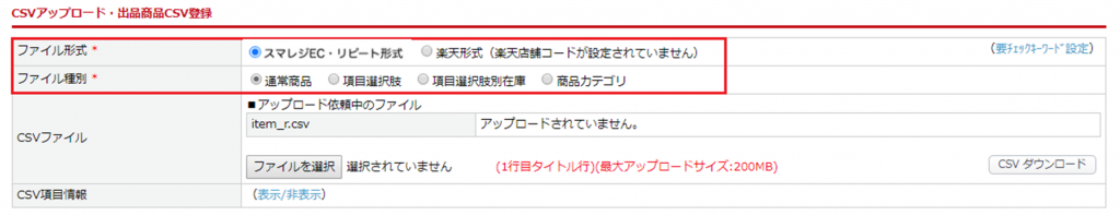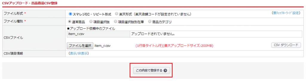 CSVアップロード・出品商品CSV登録
