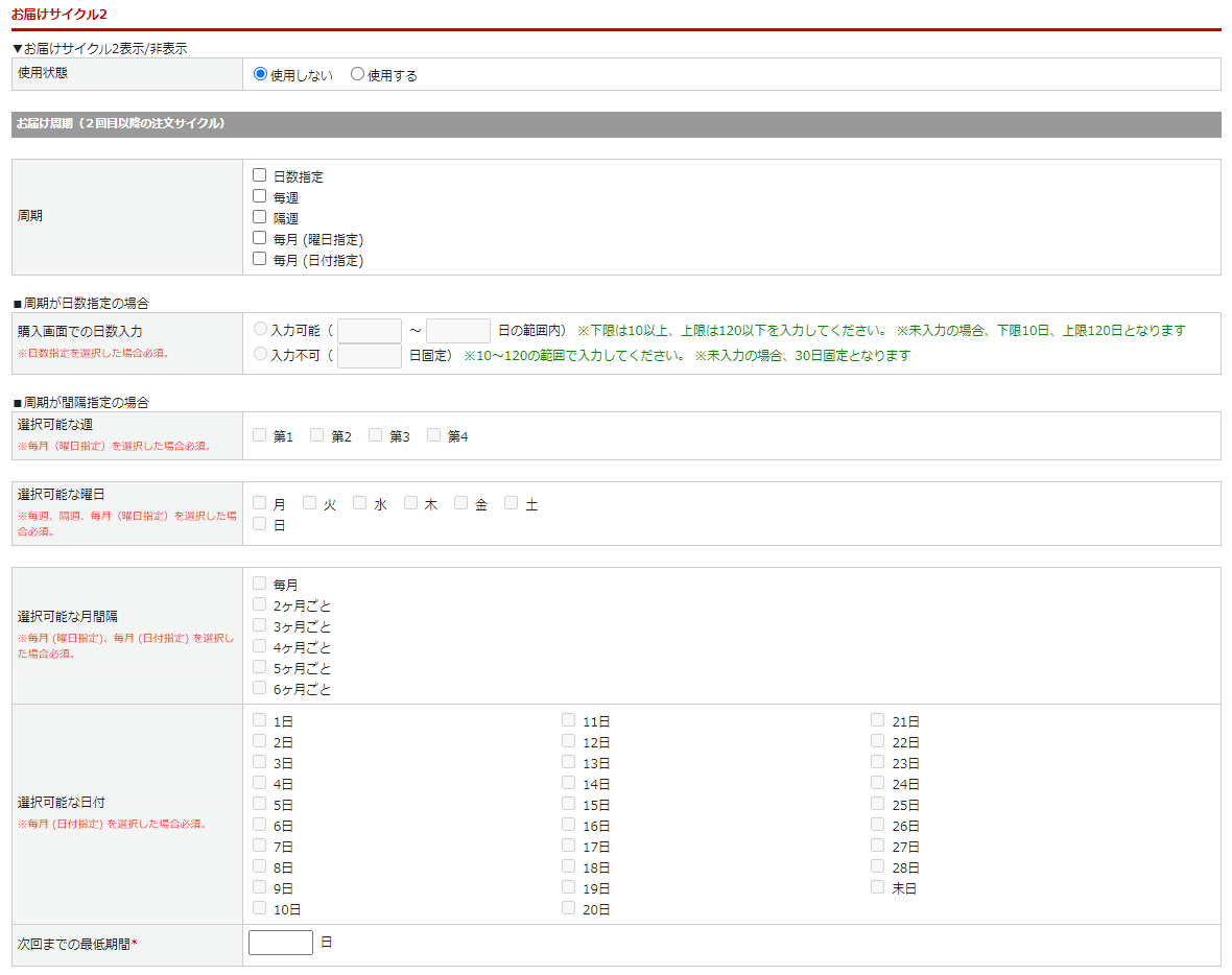 「お届けサイクル1(デフォルト)」と同様の設定画面が表示されます。