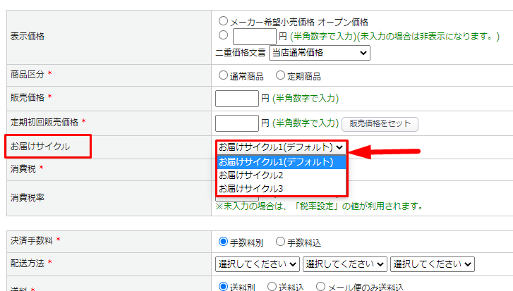 お届けサイクルを登録後、商品に情報を紐づけます。