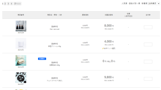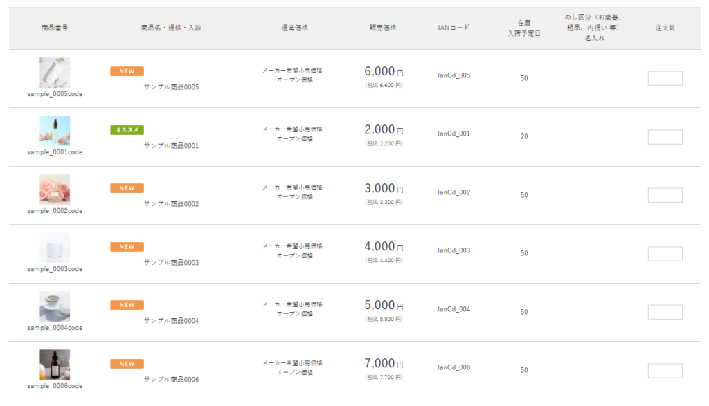 新レイアウトのカテゴリーページをご利用の場合には、オーダーシート機能はご利用できませんのでご注意ください。