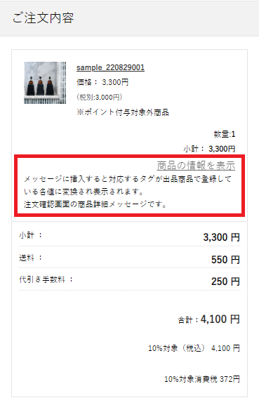 商品詳細メッセージ表示形式(PC):全文表示 の表示例