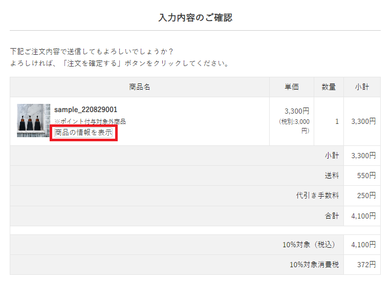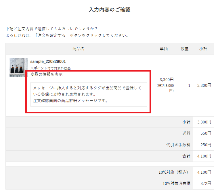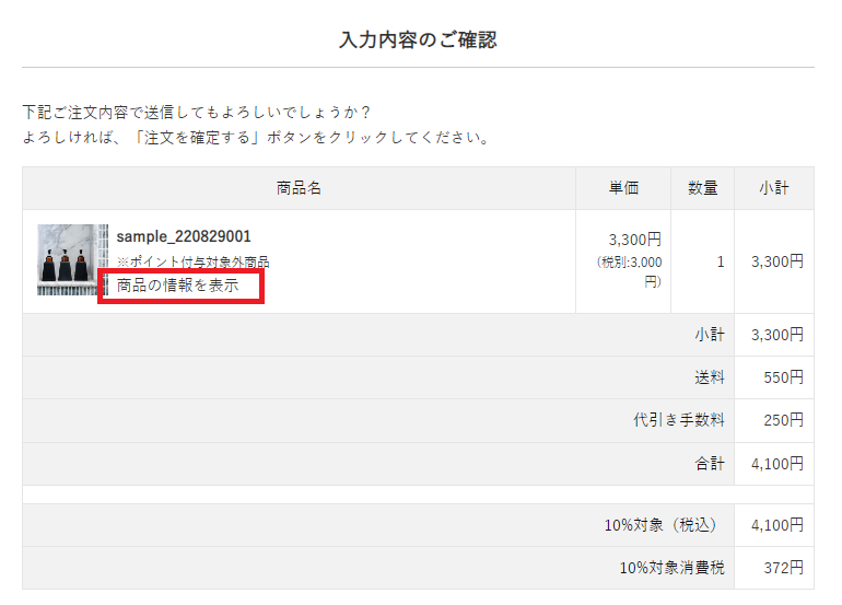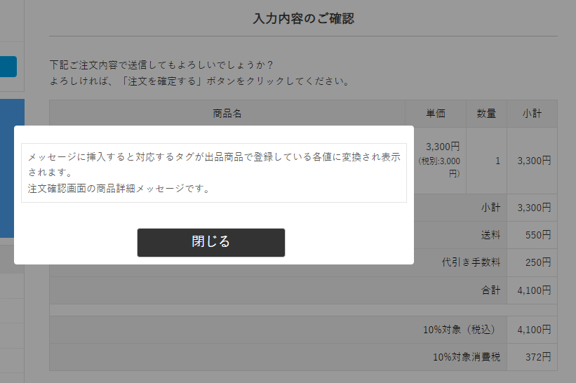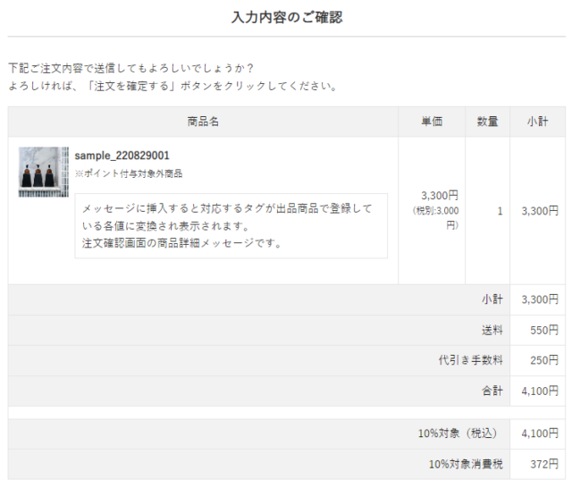 購入時の入力内容のご確認画面に表示させる内容を設定することができます。