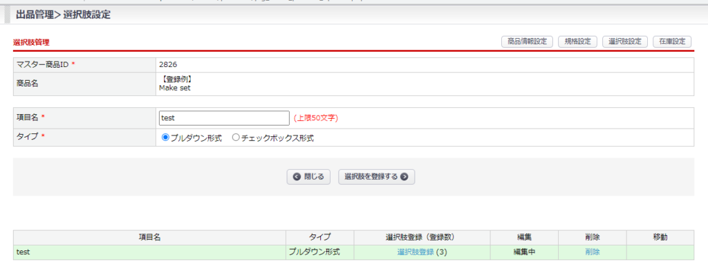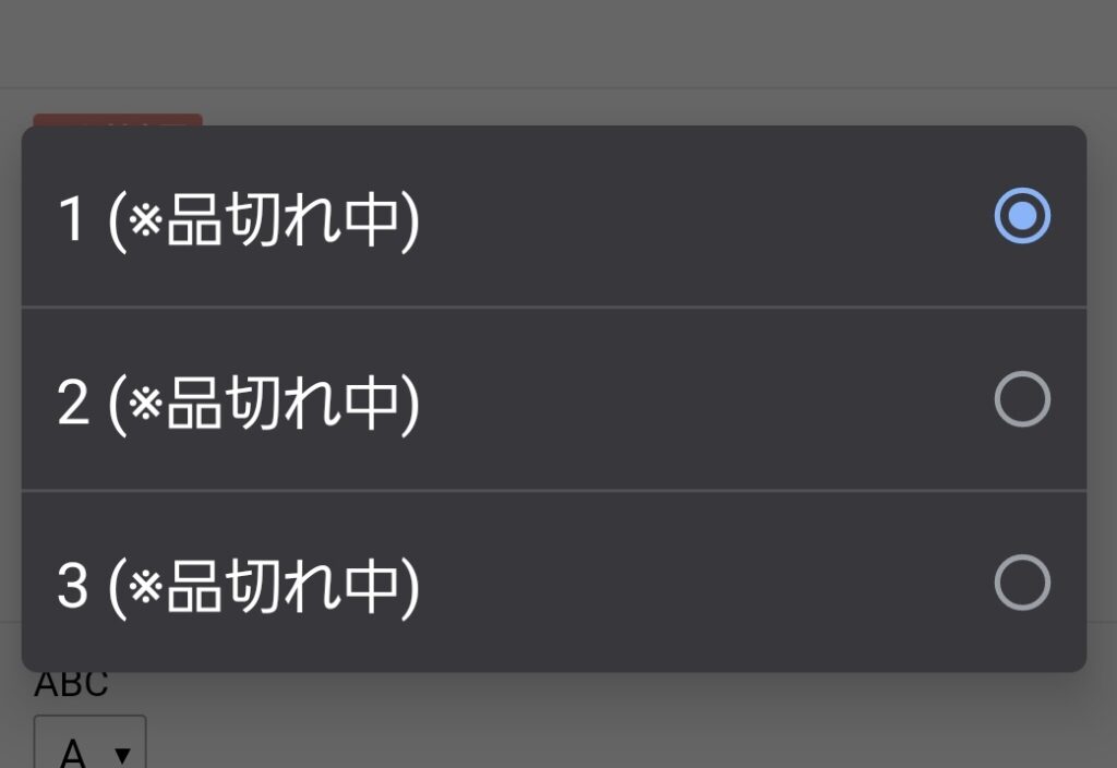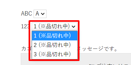 規格商品で在庫数が0のとき、 ※初期設定は「品切れ中」です。 |
