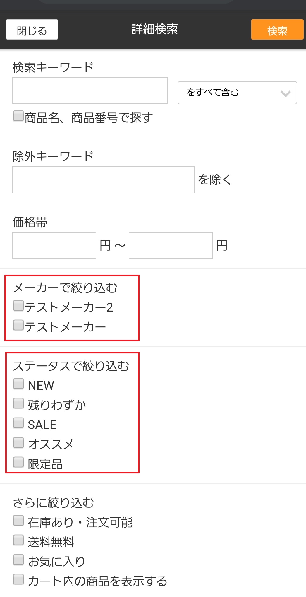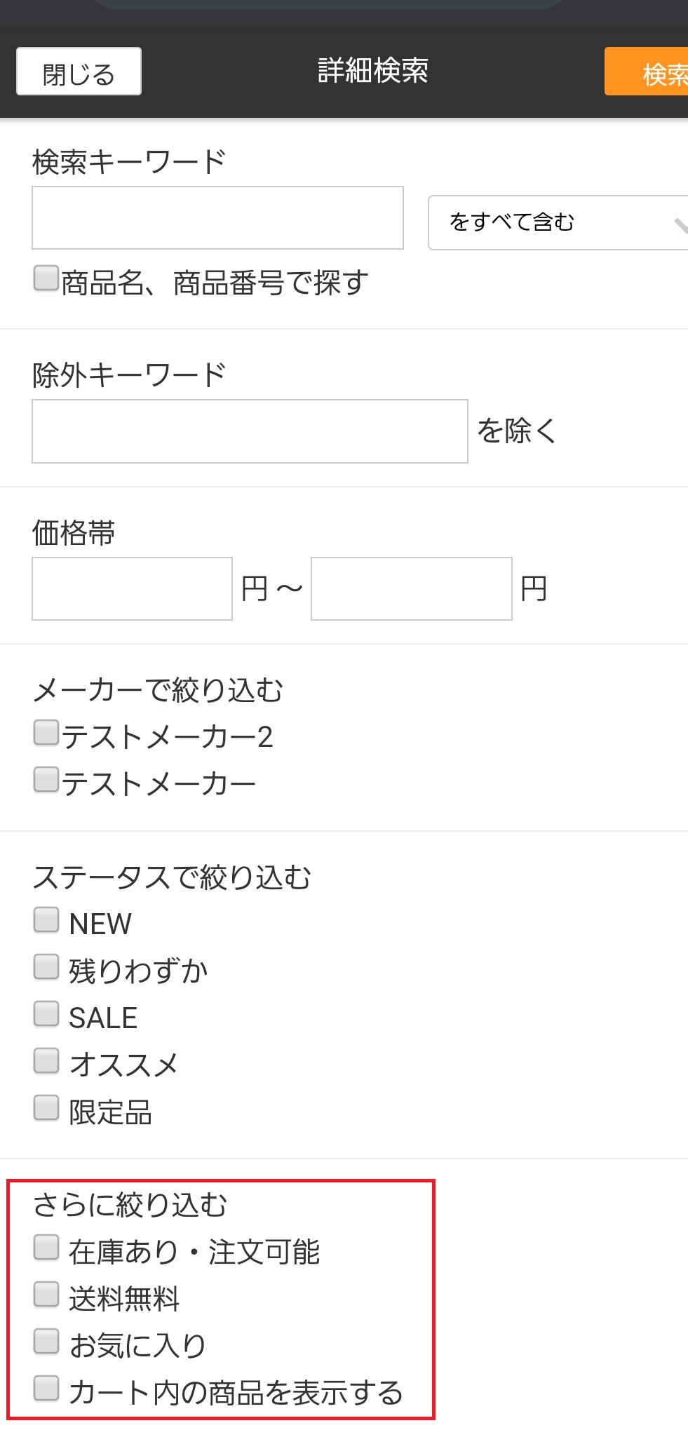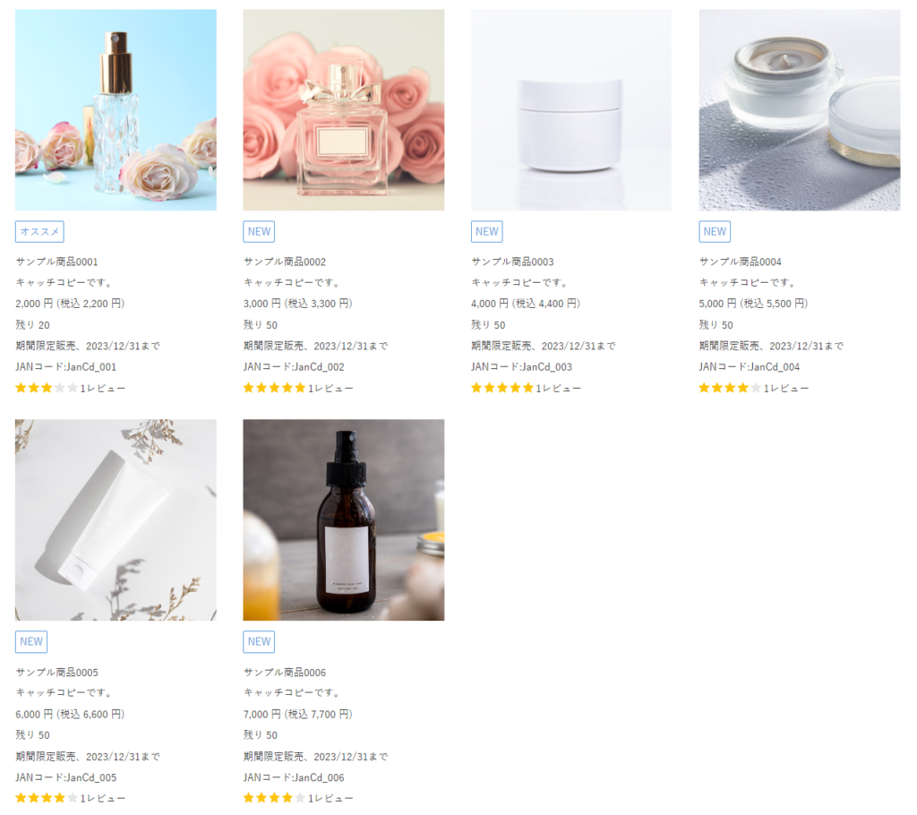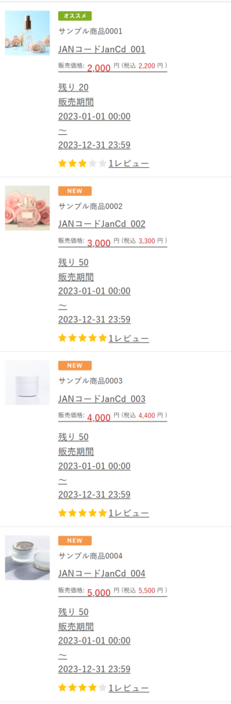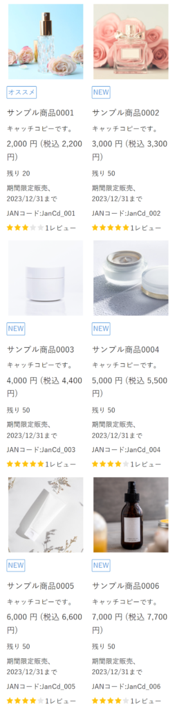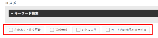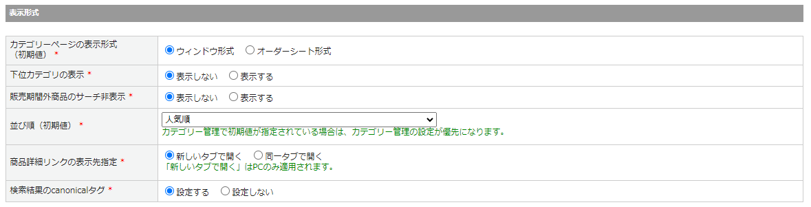 | 販売期間外商品のサーチ非表示 | 販売期間外商品のカテゴリーページ表示有無を設定できます。