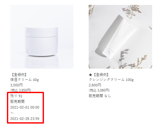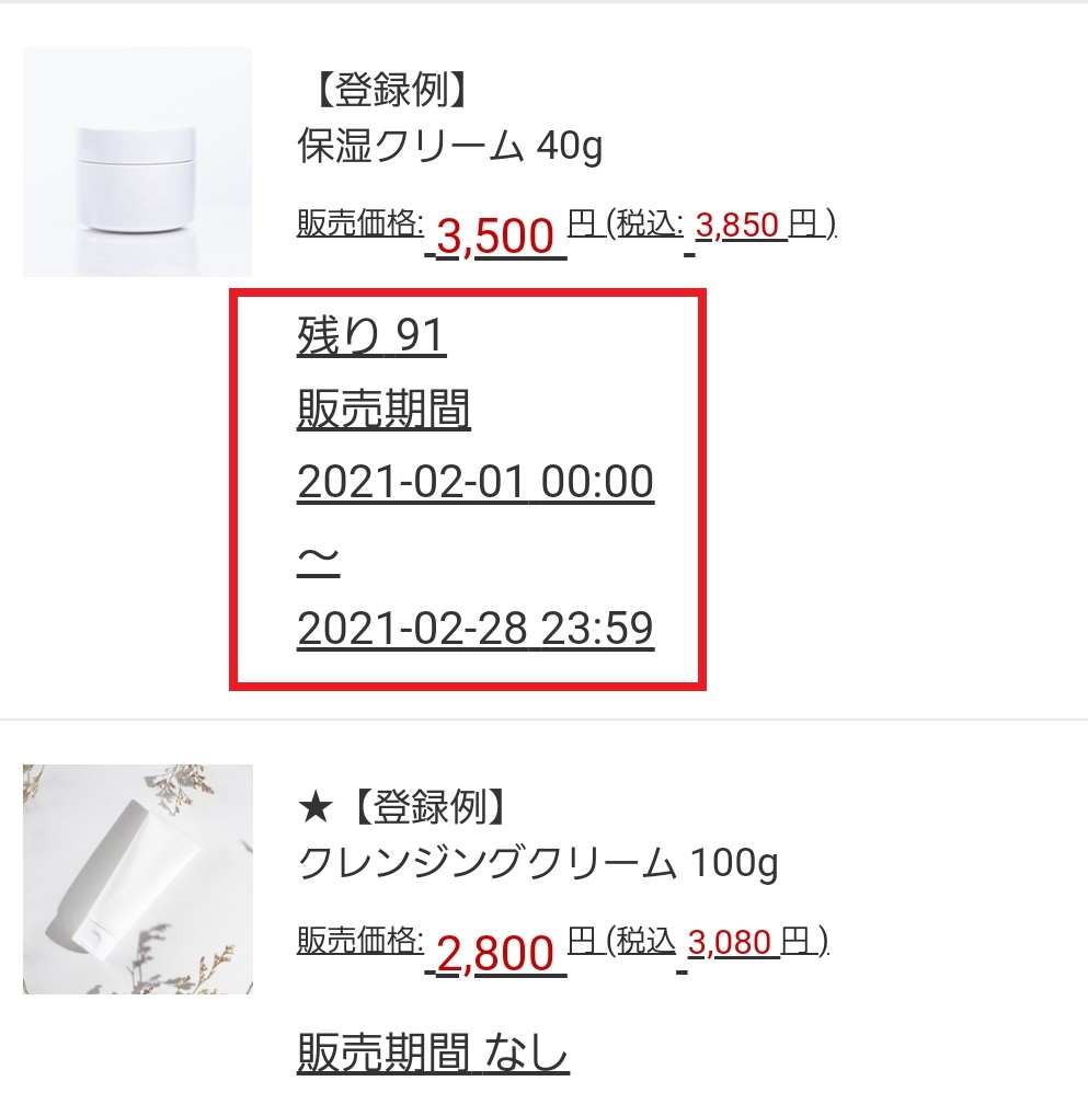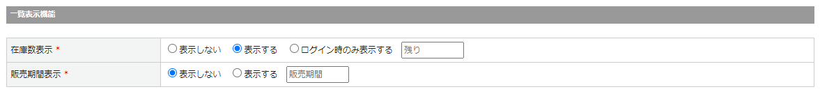 在庫数と販売期間の表示有無を設定できます。 PC |