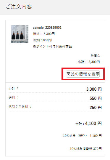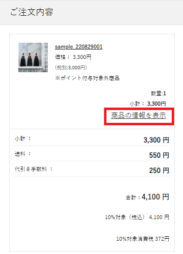 商品詳細メッセージ表示形式(PC):アコーディオン表示 の表示例