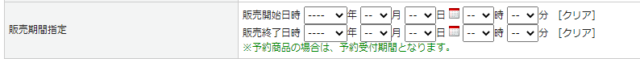 出品商品登録画面>販売期間指定 にて販売期間を設定可能です。 |