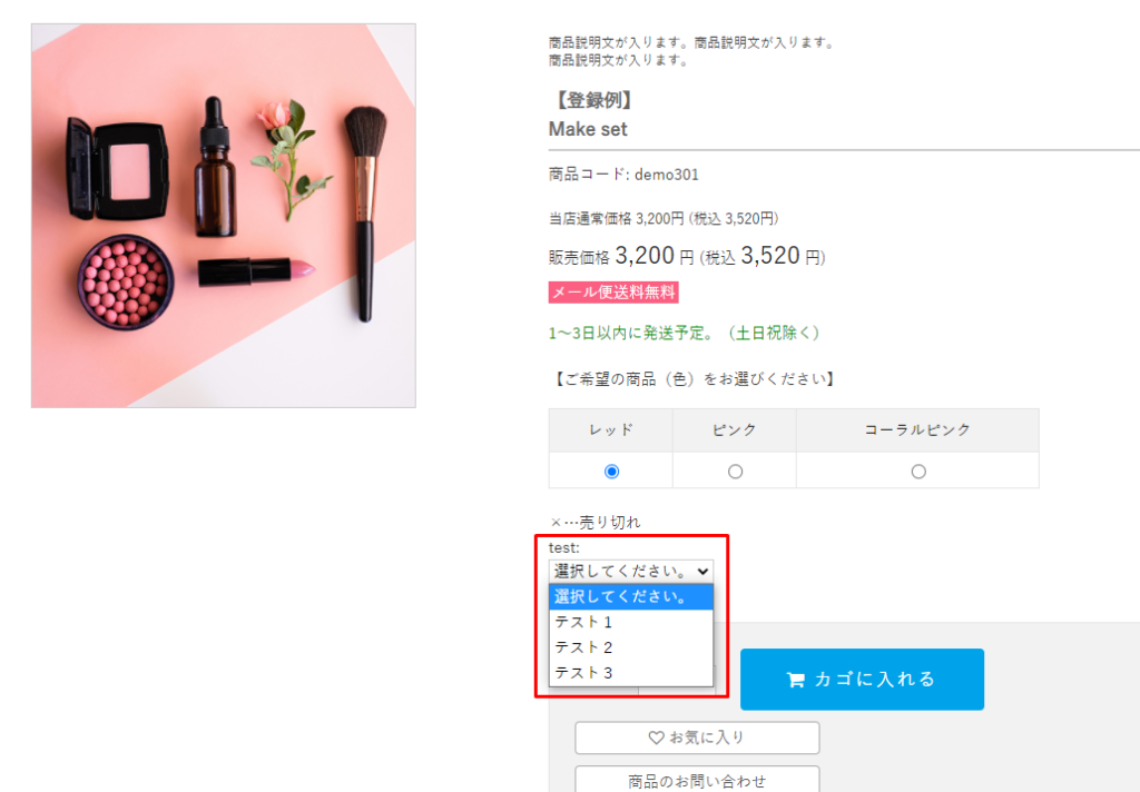 商品詳細ページの選択肢チェックを[任意]と[必須]から選択できます。