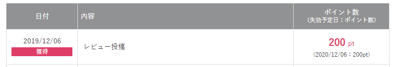 「レビュー投稿付与ポイント」に付与(没収)されたポイント数が表示されます。
