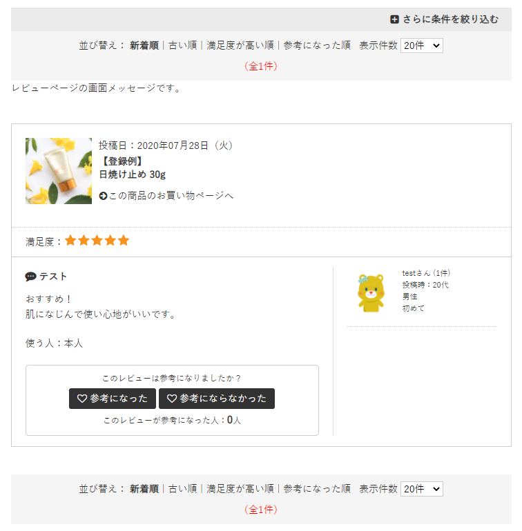 【商品ページのレビュー例】