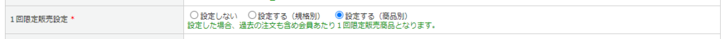 「1回限定販売設定」を[設定しない]に設定することで注文できるようになります。