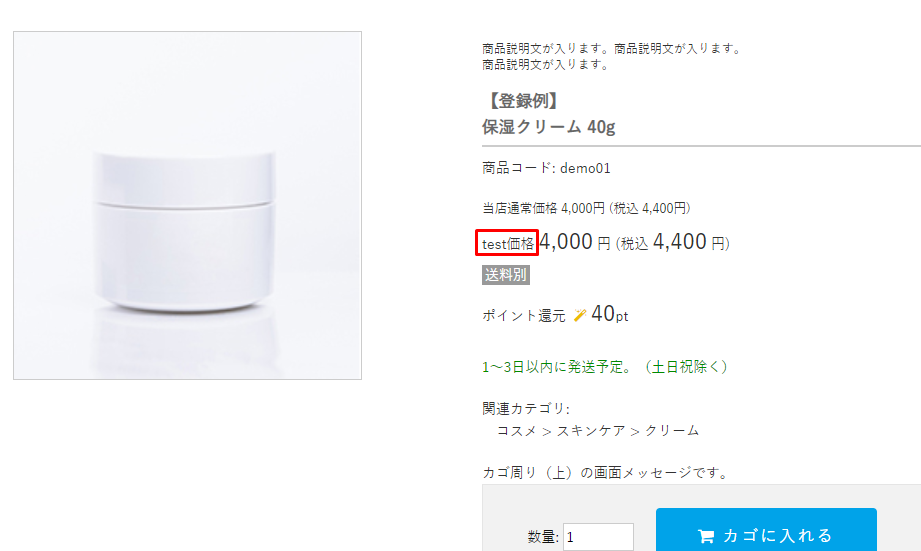 カテゴリーページ、商品詳細ページでの「販売価格」ラベルの表記を変更できます。