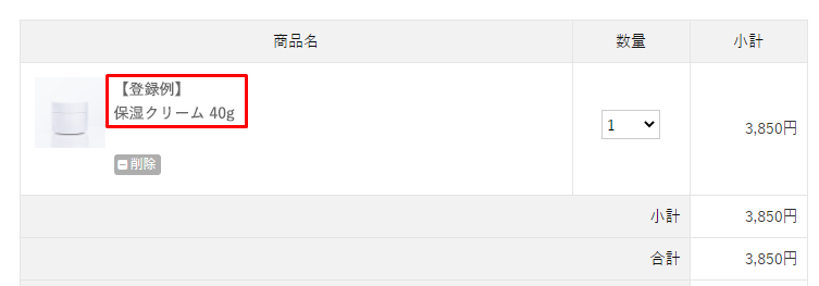 ・カート内の商品名をクリック