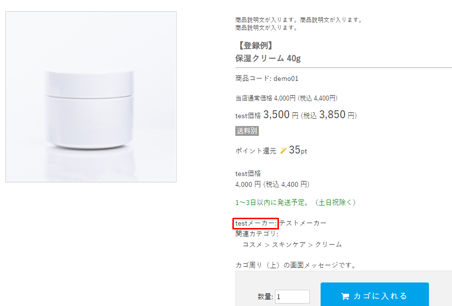商品詳細ページでの「メーカー」の表記を変更できます。